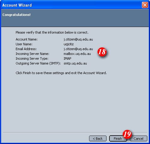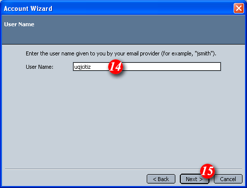 | 16)Netscape/Mozilla will automatically enter your email address as the account name. It is recommended that you leave this 'as is'. |