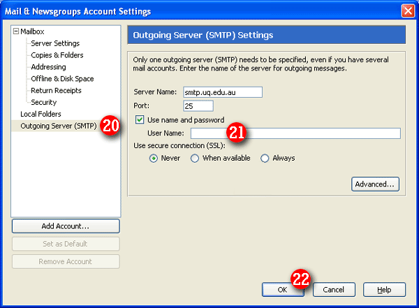 | 20) Select 'Outgoing Server (SMTP)'. |