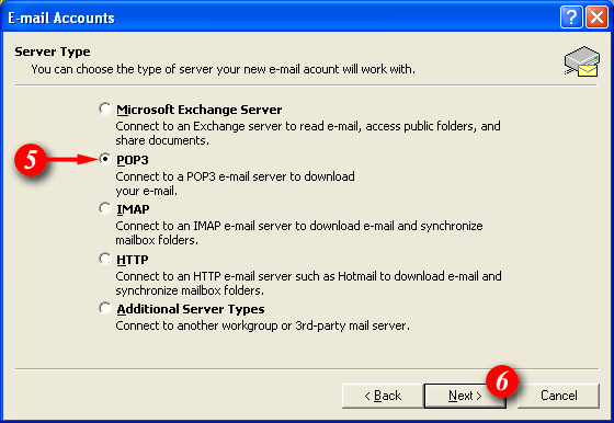 | 5)Place a dot next to the 'POP3' option. | ||||