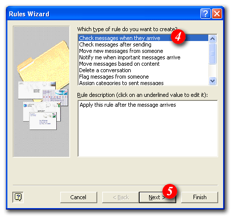 | 2)Select 'Rules Wizard...' from the drop list |
